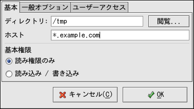 基本権限 — ディレクトリが読み込み専用か、或は読み込み/書き込み両方の権限を持つかどうか 指定します。
