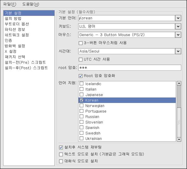 ű½ºÅ¸Æ® ¼³Á¤ ÇÁ·Î±×·¥¸¦ »ç¿ëÇϱâ À§Çؼ´Â ¹Ýµå½Ã X À©µµ¿ì ½Ã½ºÅÛÀ» ½ÇÇàÇÏ¼Å¾ß ÇÕ´Ï´Ù. ű½ºÅ¸Æ® ¼³Á¤ ÇÁ·Î±×·¥¸¦ ½ÃÀÛÇϽ÷Á¸é ÆÐ³Î¿¡¼ ÁÖ ¸Þ´º ¹öưÀ» Ŭ¸¯ÇϽŠÈÄ ½Ã½ºÅÛ µµ±¸ => ű½ºÅ¸Æ®¸¦ ¼±ÅÃÇϽðųª ½© ÇÁ·ÒÇÁÆ®¿¡¼ /usr/sbin/redhat-config-kickstart¶ó°í ÀÔ·ÂÇÏ½Ã¸é µË´Ï´Ù.