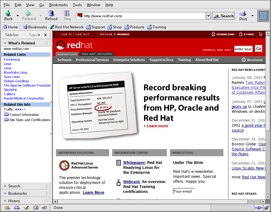 Once you have configured your Internet connection (see Chapter 5 Getting Online), you are ready to get online. Red Hat Linux comes with several Web browsers, graphical applications that use your Internet connection to access the World Wide Web: news, research, shopping, banking, and more. This chapter briefly explains how to surf the Web using Mozilla and Galeon. For information about using the Konqueror Web browser, refer to Section A.6 Browsing the Web with Konqueror.