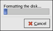 To start gfloppy, choose Main Menu => System Tools => Floppy Formatter. From a shell prompt, type /usr/bin/gfloppy. As shown in Figure 4-2, the gfloppy interface is small and has few options. The default settings are sufficient for most users and needs; however, you can format your diskette with an MS-DOS file system type if necessary. You can also choose the density of your diskette (if you are not using the usual high density 3.5" 1.44MB diskette). You can also elect to quick format the diskette if it was previously formatted as ext2.