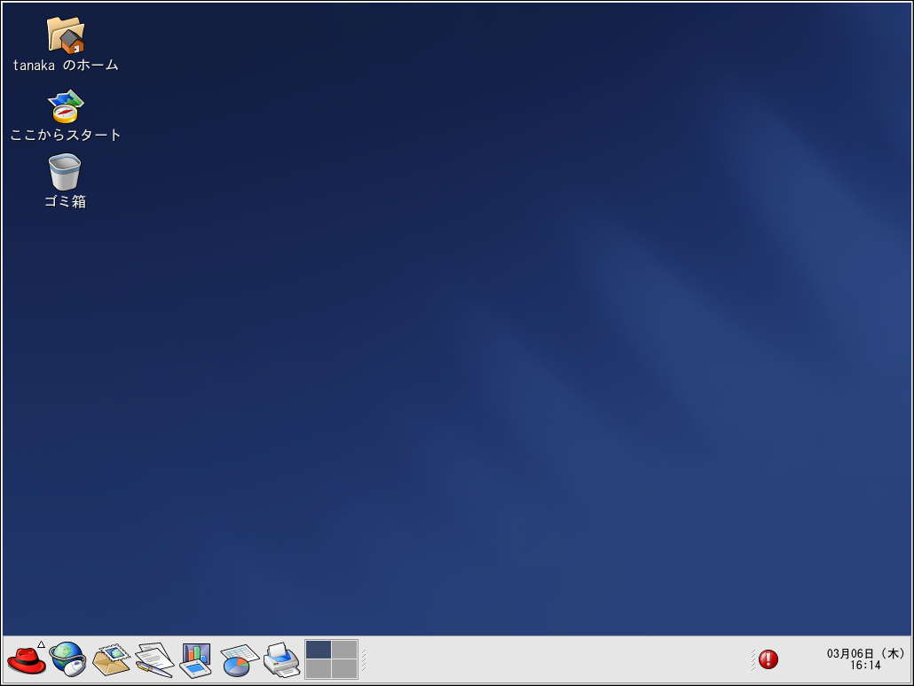 初期設定のグラフィカルデスクトップは 図2-1のような表示になります。