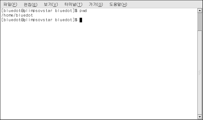 pwd ¸í·É¾î´Â print working directory (ÇöÀç µð·ºÅ丮 º¸¿©ÁÜ)ÀÇ ¾àÀÚÀÔ´Ï´Ù. ¿©·¯ºÐÀÌ pwd¸¦ ÀÔ·ÂÇϽøé, ¸®´ª½º ½Ã½ºÅÛ¿¡°Ô ¿©·¯ºÐÀÇ ÇöÀç À§Ä¡¸¦ º¸¿© ´Þ¶ó°í ¹¯´Â °ÍÀÔ´Ï´Ù. ½Ã½ºÅÛÀÌ Á¤º¸¿¡ ´ëÇÑ ¿äû¿¡ ´ëÇØ ÀÀ´äÇÏ´Â °ÍÀ» Ç¥ÁØ Ãâ·Â (standard output)À̶ó°í Çϸç, ÀÌ·¯ÇÑ Ç¥ÁØ Ãâ·ÂÀÌ ½© ÇÁ·ÒÇÁÆ®¿¡ ³ªÅ¸³ª°Å³ª, ¶Ç´Â ´Ù¸¥ ÇÁ·Î±×·¥À̳ª ÇÁ¸°ÅÍ¿Í °°Àº ±× ¿Ü Ãâ·Â ÀåÄ¡·Î Ãâ·ÂµË´Ï´Ù.