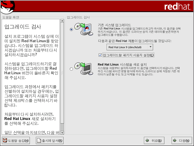 ¸¸ÀÏ ¼³Ä¡ ÇÁ·Î±×·¥ÀÌ ÀÌÀü ¹öÀüÀÇ Red Hat Linux°¡ ½Ã½ºÅÛÀ» ¹ß°ßÇÏ´Â °æ¿ì ¾÷±×·¹ÀÌµå °Ë»ç ȸéÀÌ ³ªÅ¸³³´Ï´Ù.