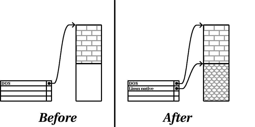 | DOS 16 位元 >=32 | 06 | Linux extended | 85 |