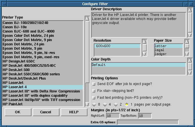 In addition to configuring print queue able to print graphical and PostScript output you can configure a text-only printer, which will only print plain ASCII text. Most printer drivers are also able to print ASCII text without converting it to PostScript first; simply choose Fast text printing when you configure the filter. Please Note: This only works for non-PostScript printers.