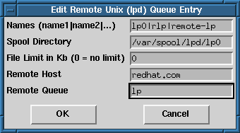 After you choosing the printer type, a dialog requests further information about the print queue. All types of print queues require the following information: