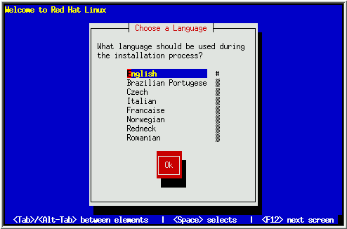 After selecting the appropriate keyboard type, press [Enter]; the keyboard type you select will be loaded automatically both for the remainder of the installation process and each time you boot your Red Hat Linux system. If you wish to change your keyboard type after you have booted your Red Hat Linux system, you may use the /usr/sbin/kbdconfig command.