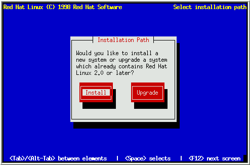 If you wish to upgrade your Red Hat Linux system, choose Upgrade.
